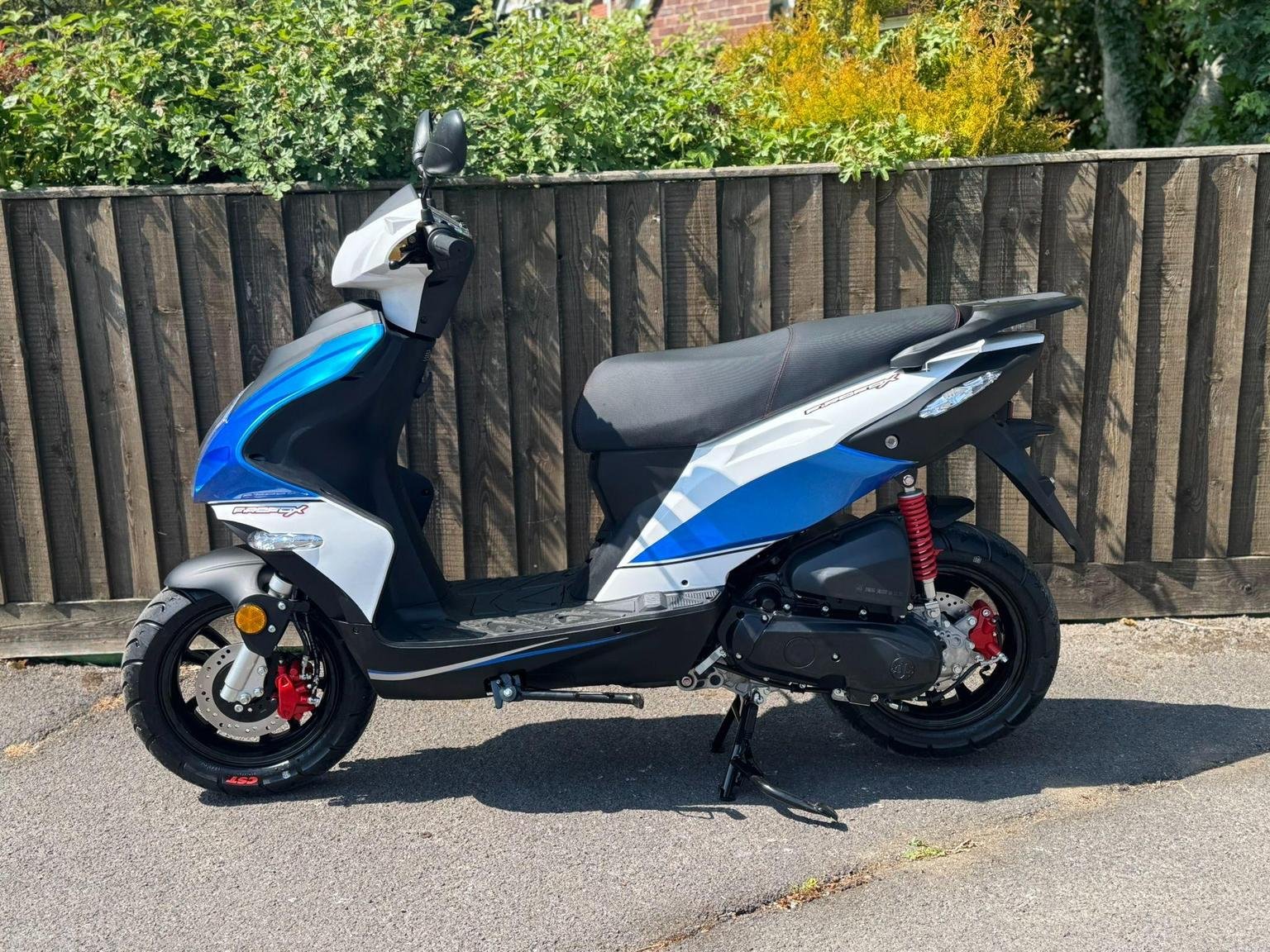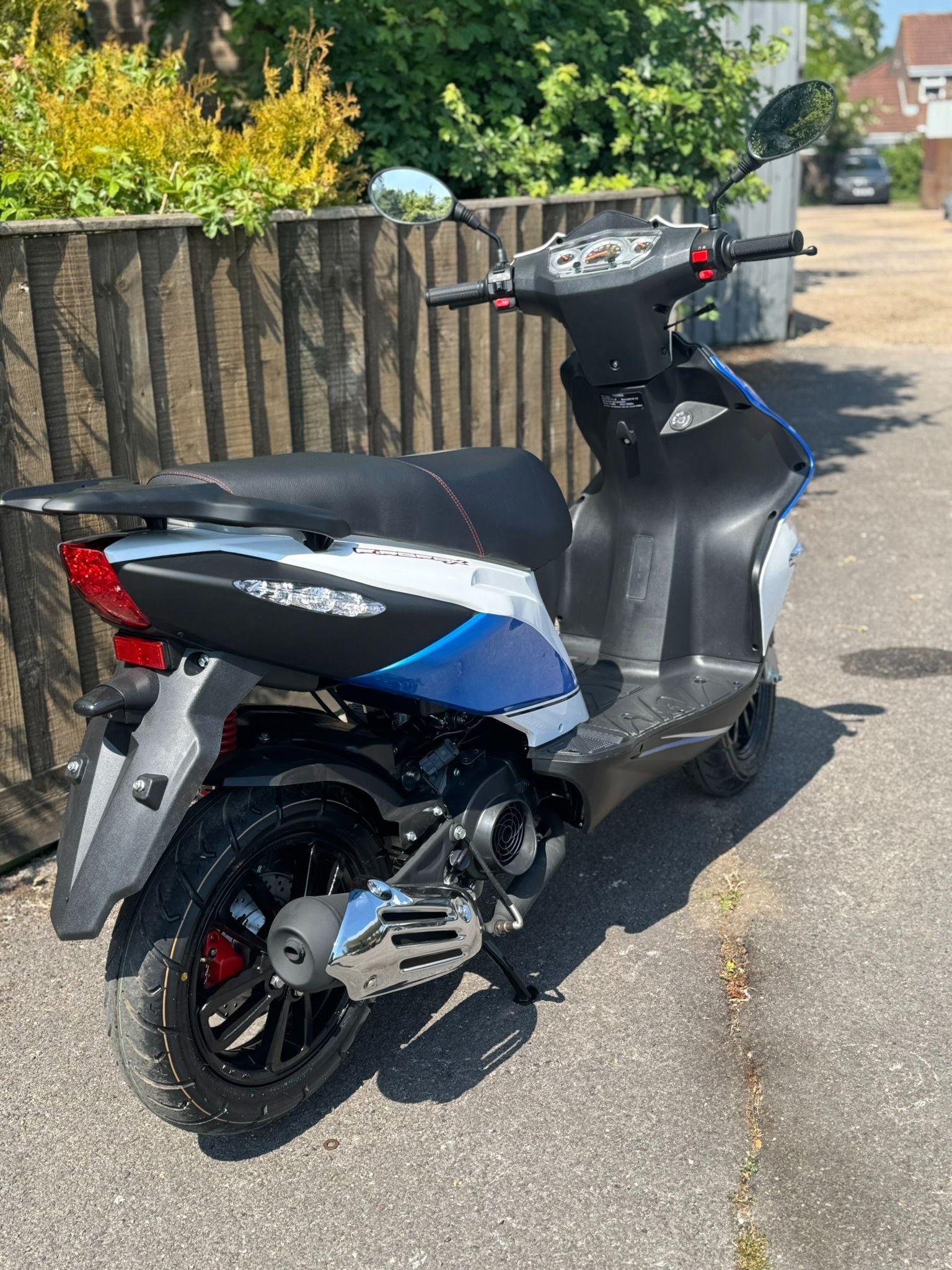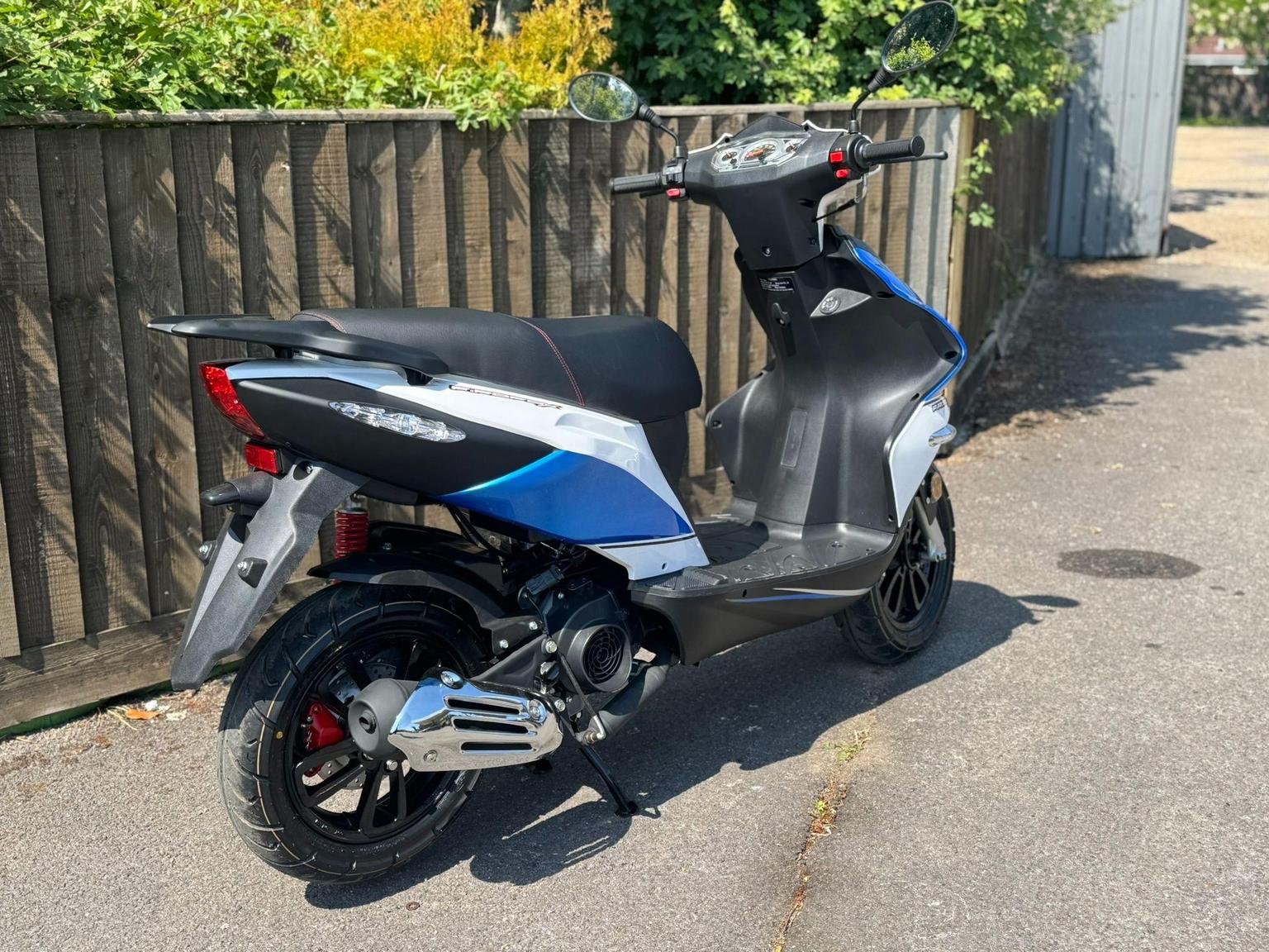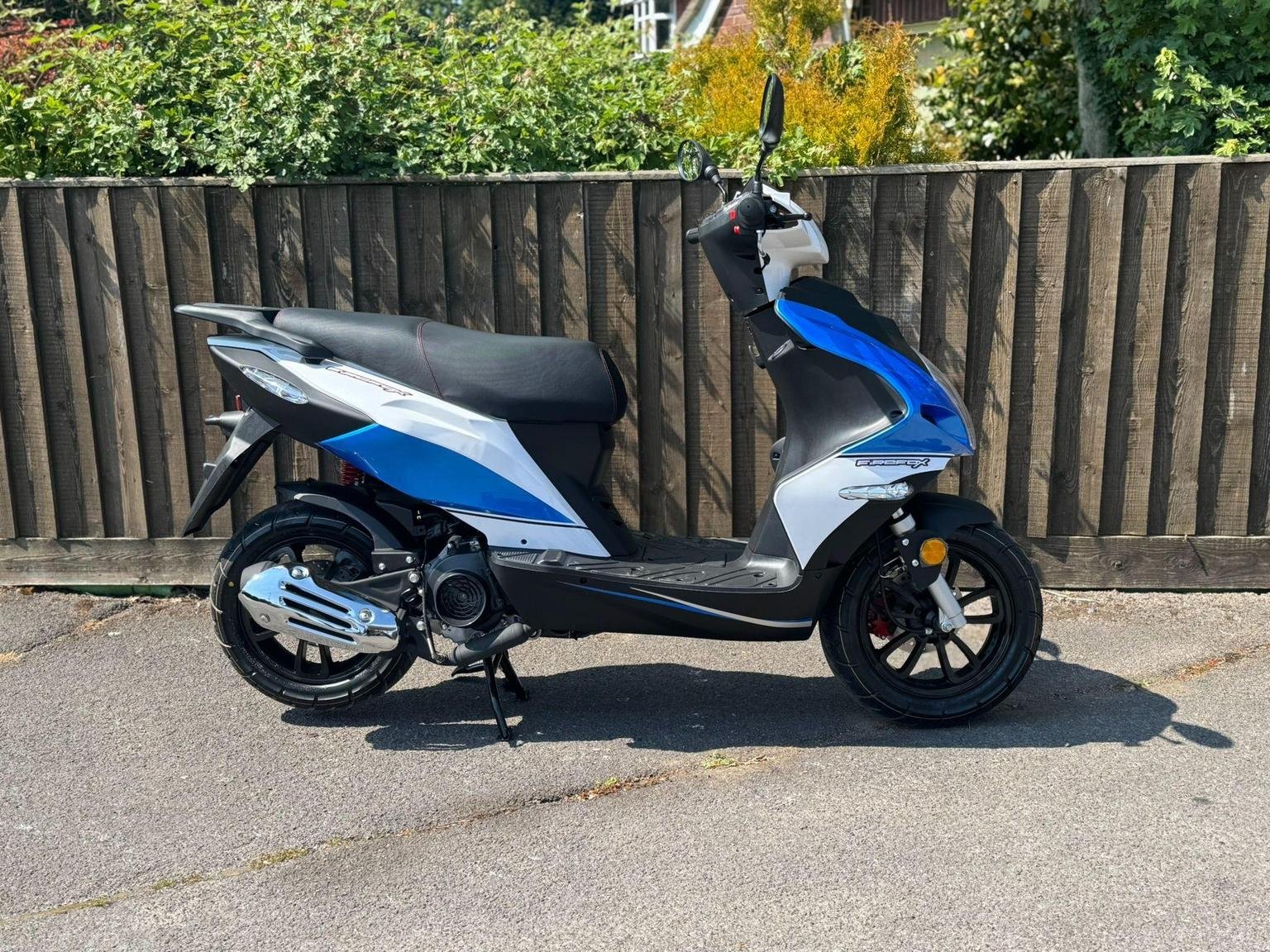 The Firefox 125 is the ultimate fusion of sport and style, for riders seeking an exhilarating experience. With its sharp lines and practical design, this 125cc scooter is more than just a mode of transportation, the Firefox embodies your passion for performance and aesthetics. The Firefox 125 is light and nimble, inspiring confidence with every twist of the throttle. Prepare for an invigorating ride like no other. Simplify your ride with the Firefox’s automatic gearbox which requires just a twist of the throttle without the need for clutch and gear use, perfect for new riders. Keeping up with traffic is a breeze thanks to its impressive 6.9kW of power allowing you to reach your desired speed promptly as you accelerate, while its light weight of just 108kg makes for a lively, yet easy to handle sports scooter. £1959 plus £150 Registration fee