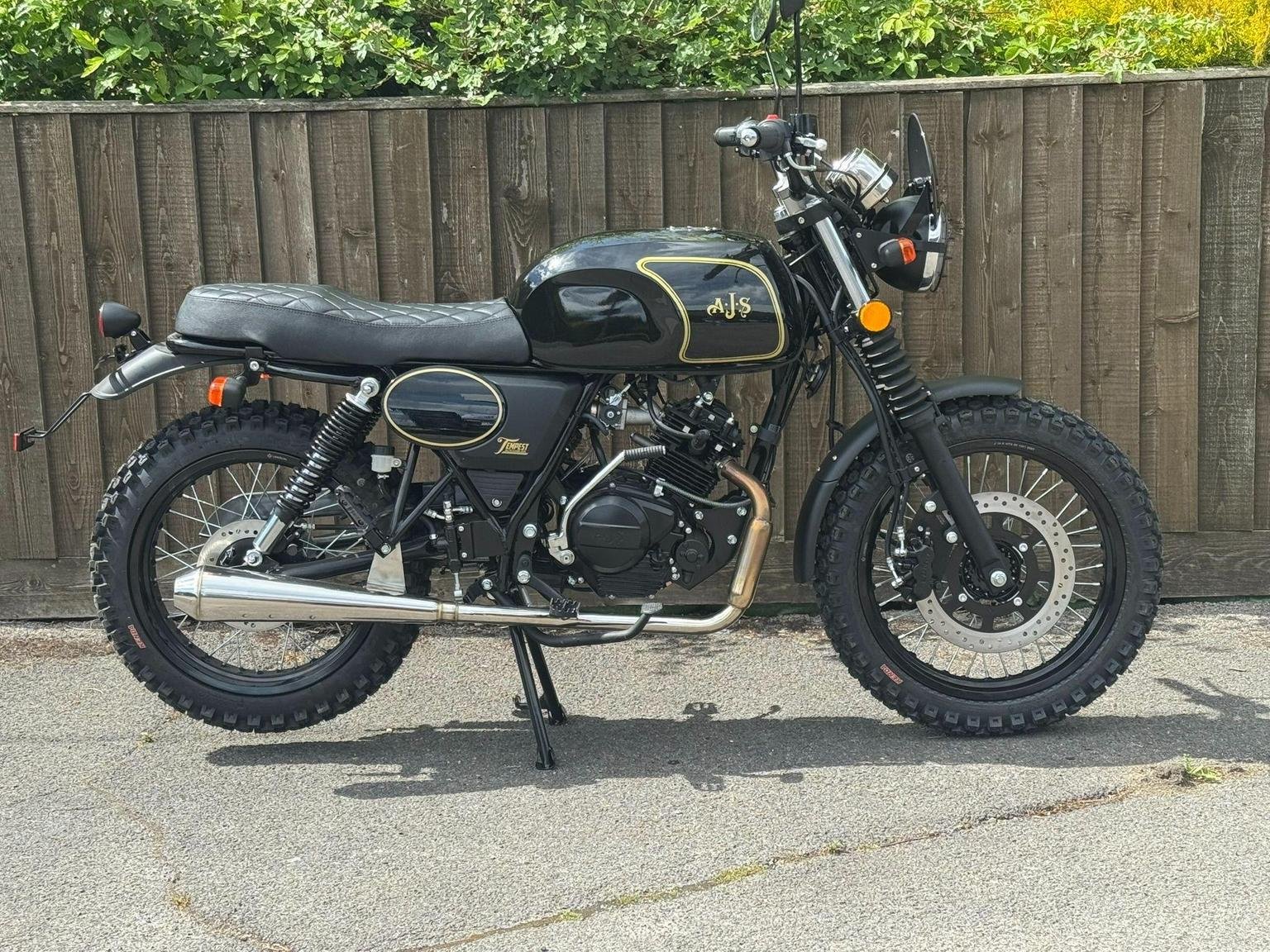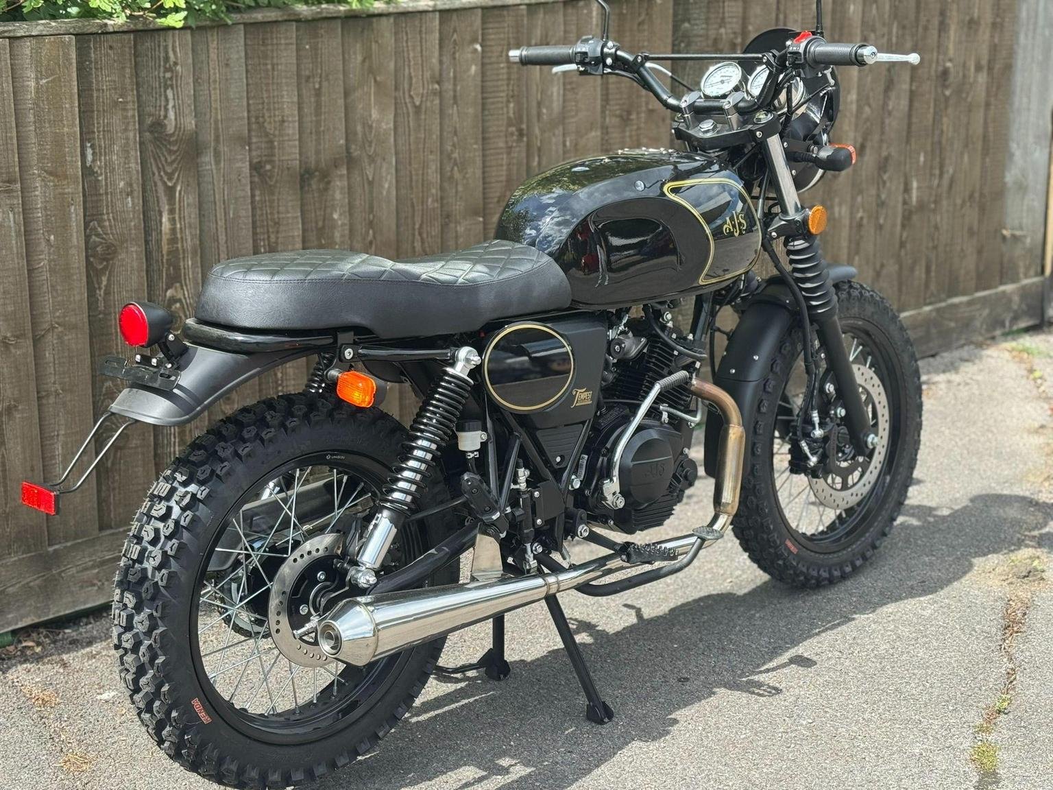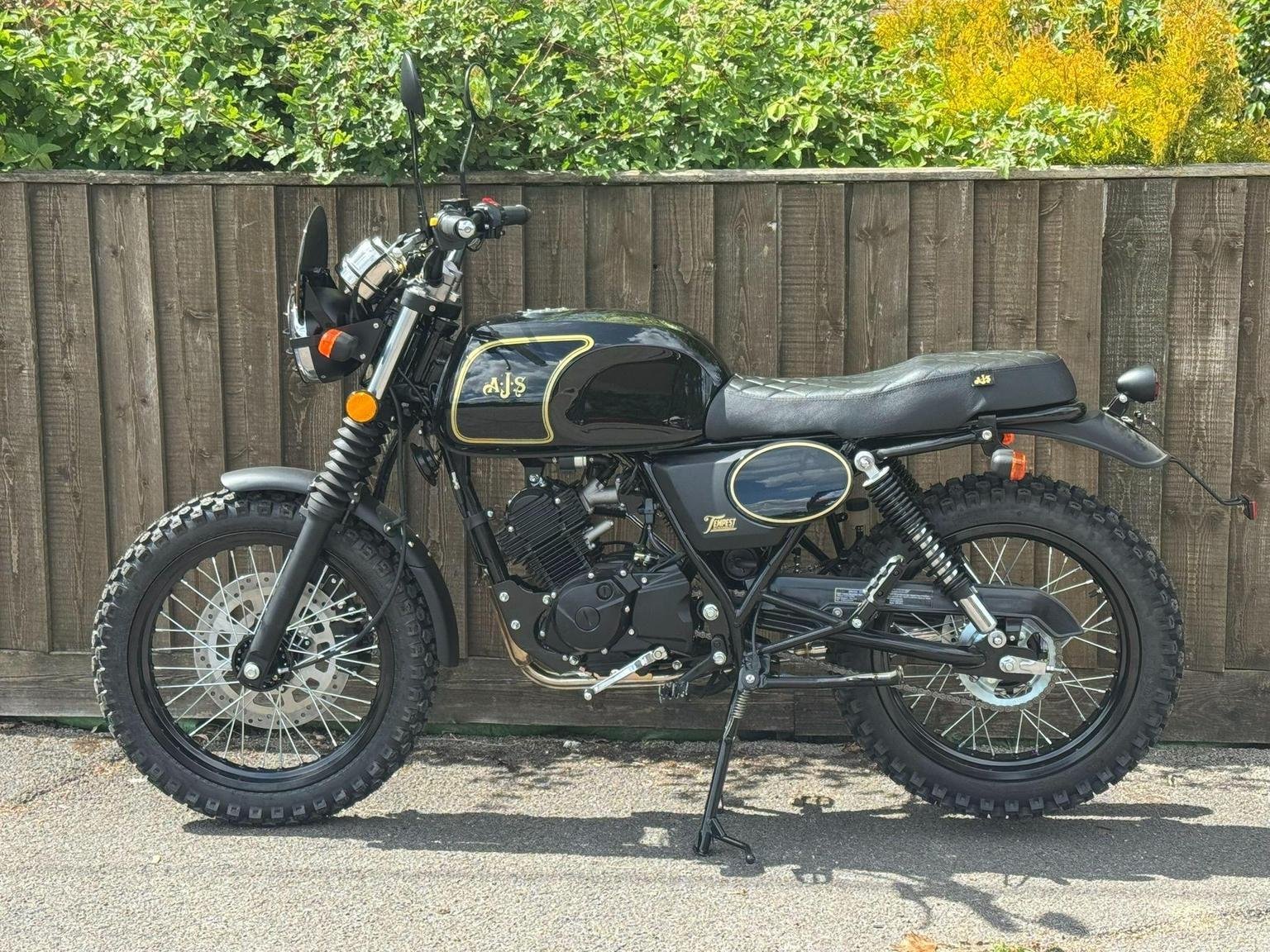 For your daily commute, or weekend trail ride, the Tempest Scrambler is your ultimate ride companion for work and play! Starting is a breeze with its electric start. Its lightweight design paired with an impressive 18" front wheel provides effortless manoeuvrability and endurance on any off-road adventure. Available in three great colour options which reflect the colours of great AJS scramblers from the past: Blazing orange, Jet Black, or Mojave yellow