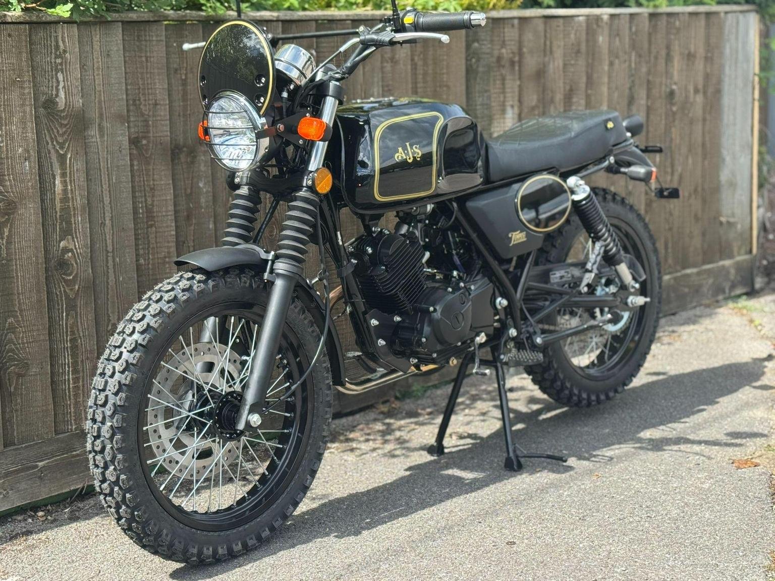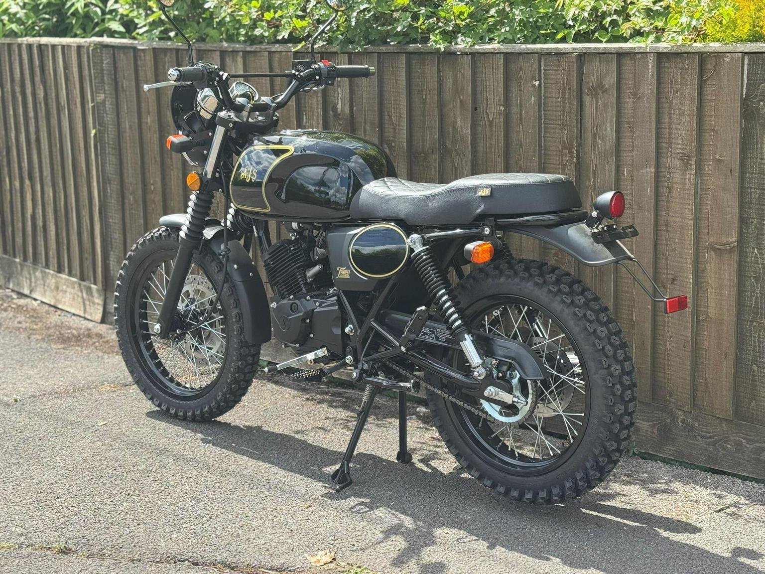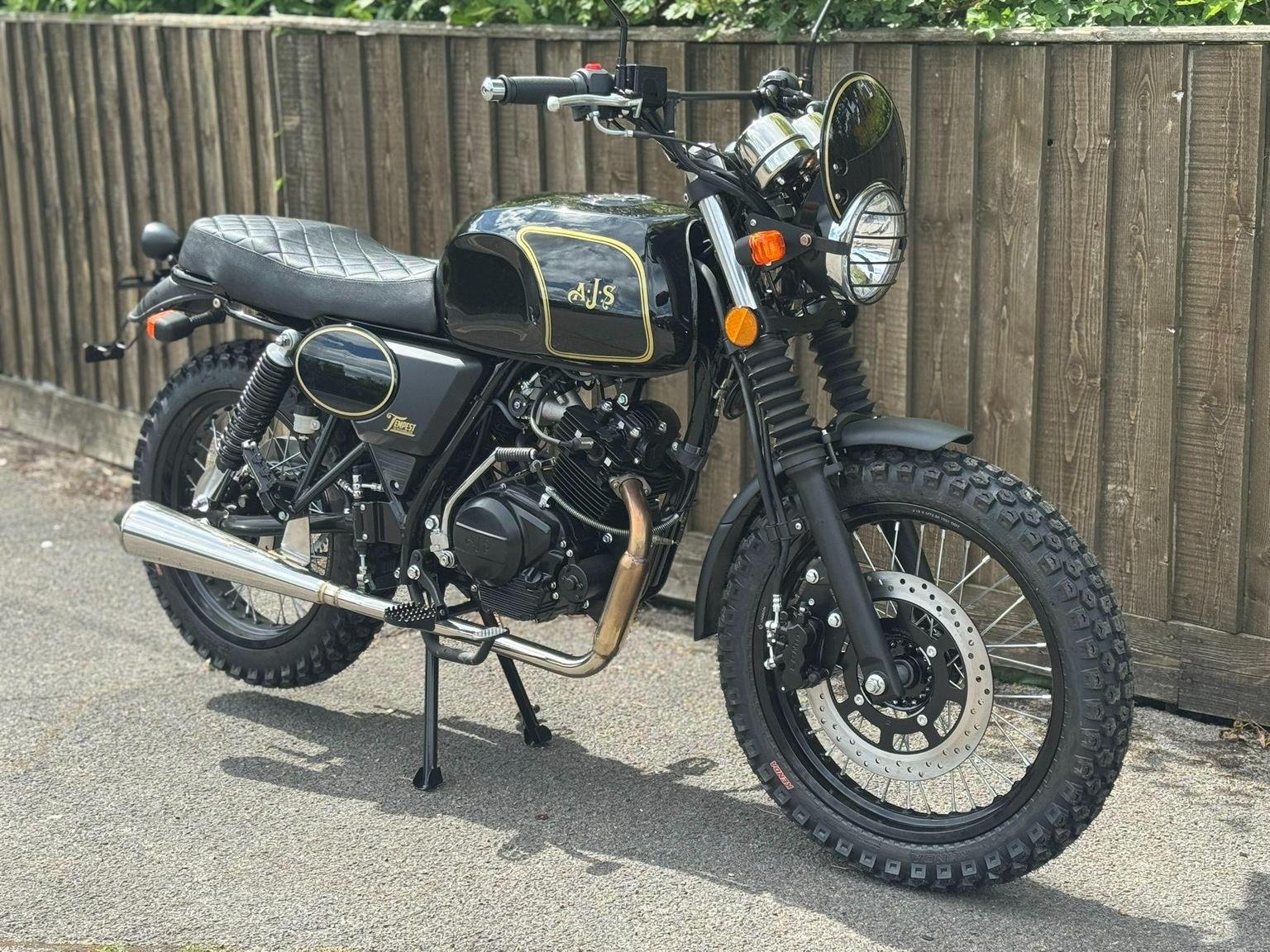 For your daily commute, or weekend trail ride, the Tempest Scrambler is your ultimate ride companion for work and play! Starting is a breeze with its electric start. Its lightweight design paired with an impressive 18" front wheel provides effortless manoeuvrability and endurance on any off-road adventure. Available in three great colour options which reflect the colours of great AJS scramblers from the past: Blazing orange, Jet Black, or Mojave yellow