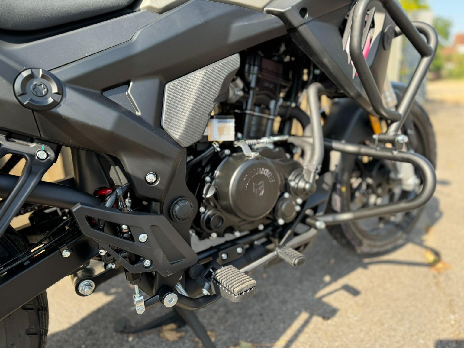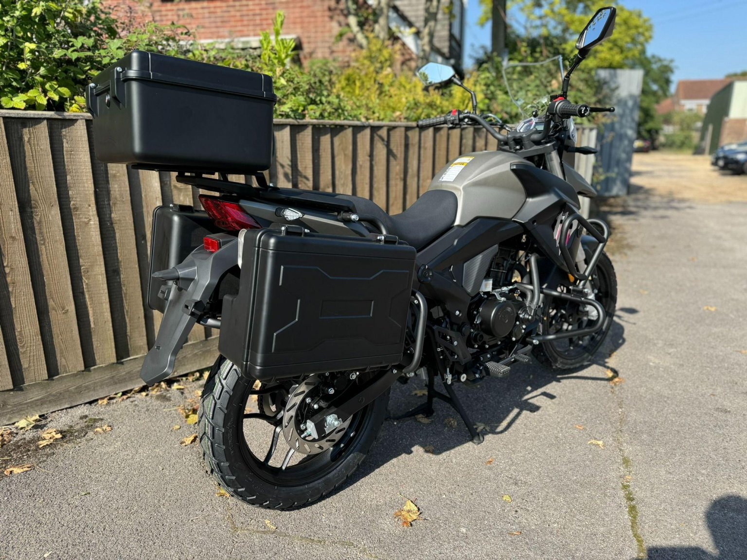 The Stravaig 125 is a force to be reckoned with. Built for the open road and wild terrain, this nimble all-rounder is equipped with a set of premium features including luggage as standard for extended journeys, tubeless spoked wheels, and an adjustable windshield for versatility in various riding conditions.